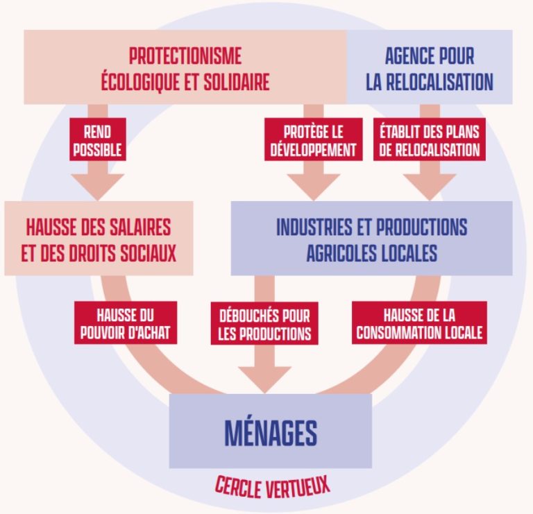 La mondialisation néolibérale est d’abord la globalisation de la finance, la concentration des pollutions, la propagation des épidémies et le déménagement permanent du monde pour le seul profit des multinationales au détriment des peuples et de l’environnement. La compétition de tous contre tous qu’elle instaure signifie désindustrialisation, chômage de masse, émigration forcée, destruction des productions vivrières, etc. Le protectionnisme écologique est la seule réponse rendant possibles un codéveloppement au service des peuples et la préservation d’un écosystème compatible avec une vie humaine digne.